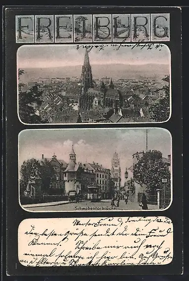 AK Freiburg / Breisgau, Strassenbahn an der Schwabentorbrücke, Münster