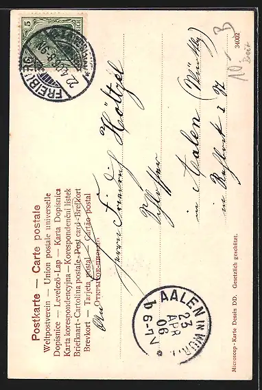 alte Ansichtskarte, gelaufen 1906, guter Zustand