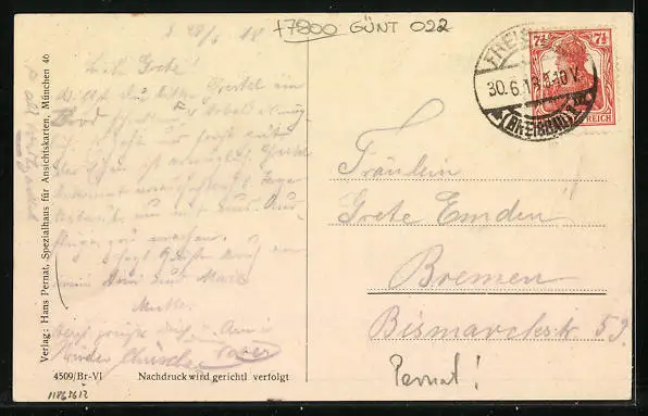 alte Ansichtskarte, gelaufen 1918, guter Zustand