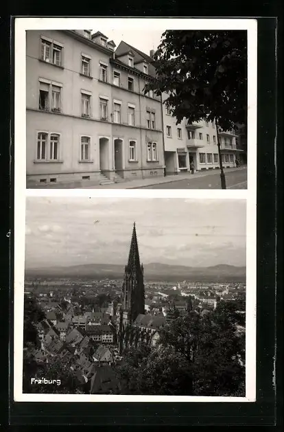 AK Freiburg, Teilansicht mit Kirche, Strassenpartie