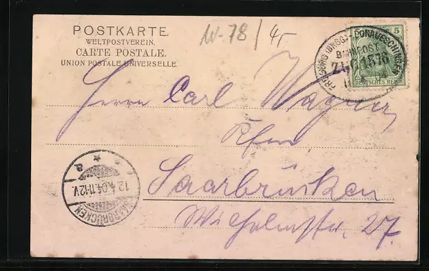 alte Ansichtskarte, gelaufen 1904, guter Zustand