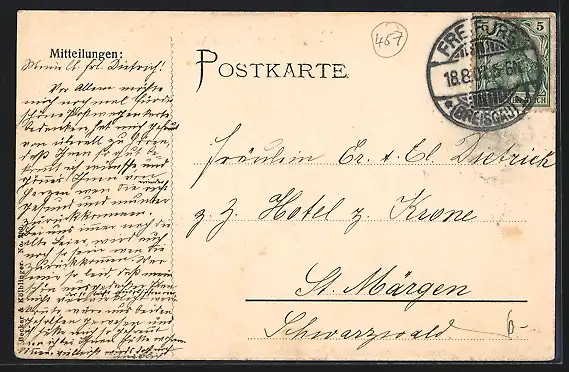 alte Ansichtskarte, gelaufen 1907, Eckknick re. oben, guter Zustand