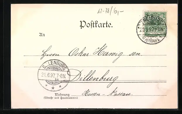 alte Ansichtskarte, gelaufen 1897, guter Zustand