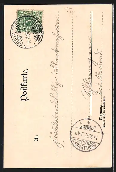alte Ansichtskarte, gelaufen 1897, Stempelspur, guter Zustand