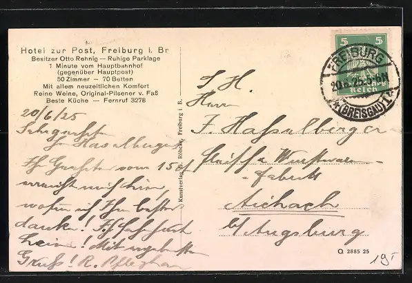 AK Freiburg i. B., Hotel zur Post Eisenbahnstrasse