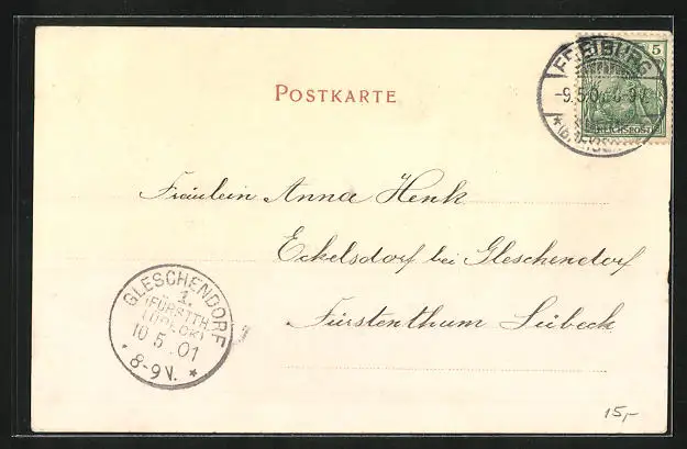 alte Ansichtskarte, gelaufen 1901, Stempelspur, Eckknick re. oben, guter Zustand