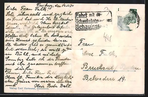 gelaufen 1934, rückseitig Klebe- und Papierreste, Stempelspur, guter Zustand