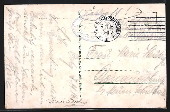 gelaufen 1916, Eckknick re. unten, Stempelspur, guter Zustand