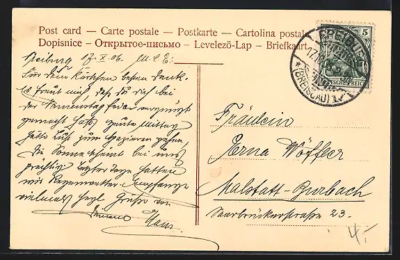 alte Ansichtskarte, gelaufen 1906, guter Zustand