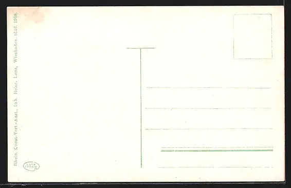 Personenbezogene Daten auf der Rückseite der Karte wurden durch blauen Textmarker unkenntlich gemacht. Die blauen Stellen sind auf die Vorderseite durchgeweicht und wirken sich negativ auf das Postkartenfoto aus