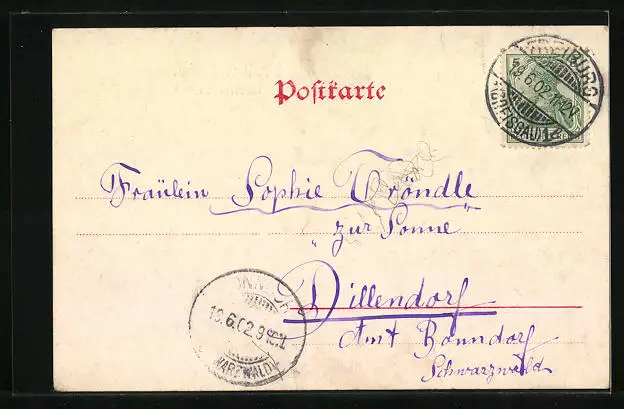 alte Ansichtskarte, gelaufen 1902, guter Zustand