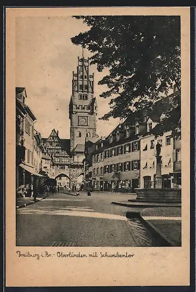 AK Freiburg i. B., Oberlinden mit Schwabentor