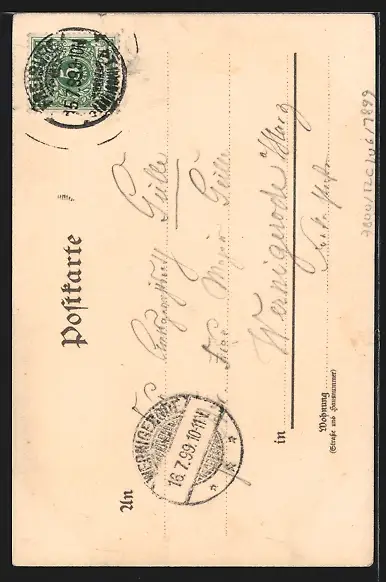 alte Ansichtskarte, gelaufen 1899, guter Zustand
