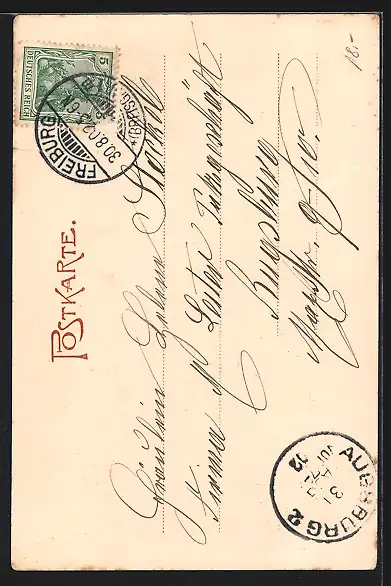 alte Ansichtskarte, gelaufen 1902, Eckknick li. oben, minimaler Einriss re. oben, guter Zustand