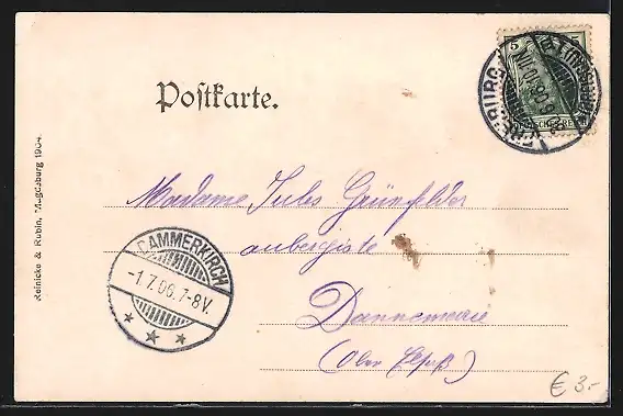 alte Ansichtskarte, gelaufen 1906, Eckknick re. oben, guter Zustand