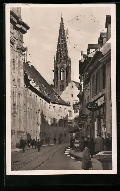 AK Freiburg i. B., Passanten in der Bertholdstrasse