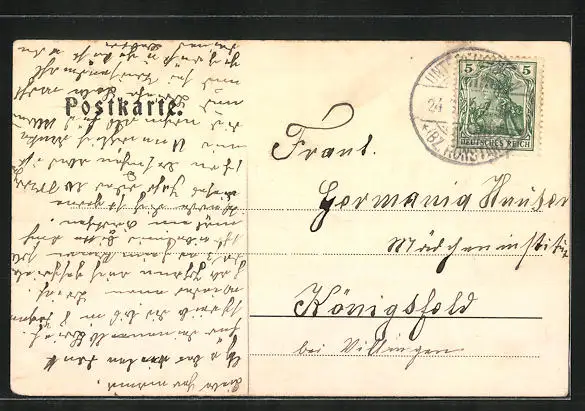 alte Ansichtskarte, gelaufen, Briefmarke tw. entfernt, rückseitig Oberflächenschaden, minimaler Einriss li. unten, guter Zustand
