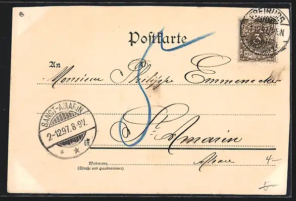 alte Ansichtskarte, gelaufen 1897, Stempelspur, guter Zustand