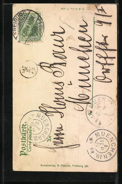 gelaufen 1903, Eckknick oben li., guter Zustand