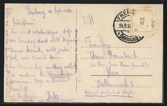 alte Ansichtskarte, gelaufen 1922, Briefmarke entfernt, guter Zustand