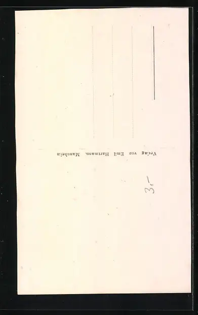 Personenbezogene Daten auf der Rückseite der Karte wurden durch blauen Textmarker unkenntlich gemacht. Die blauen Stellen sind auf die Vorderseite durchgeweicht und wirken sich negativ auf das Postkartenfoto aus