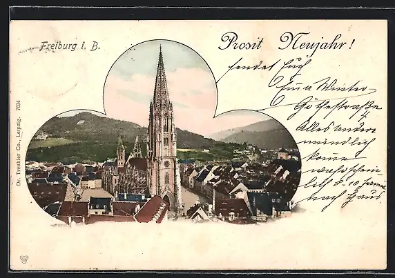 AK Freiburg i. B., Teilansicht mit Münster, Neujahrsgruss