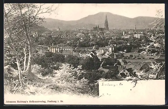 AK Freiburg i. B., Totalansicht mit Bergpanorama