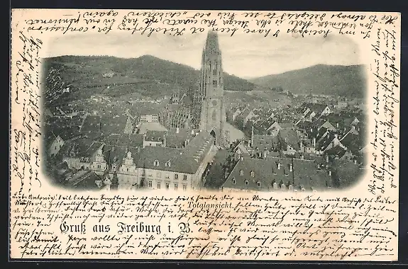 AK Freiburg i. B., Totalansicht mit Kirche