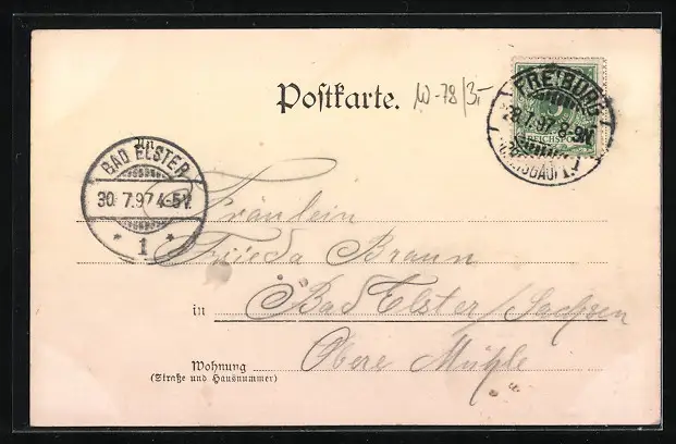 alte Ansichtskarte, gelaufen 1897, guter Zustand