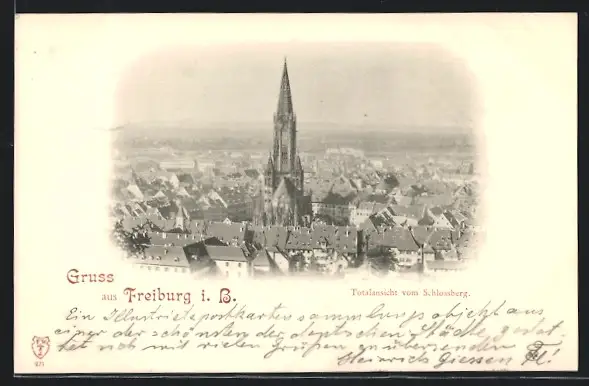 AK Freiburg i. B., Totalansicht vom Schlossberg