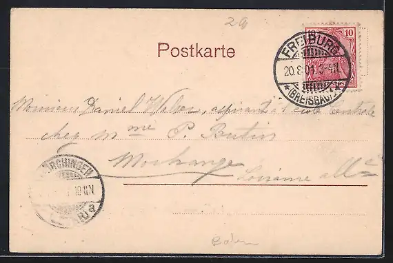 alte Ansichtskarte, gelaufen 1901, Stempelspur, guter Zustand