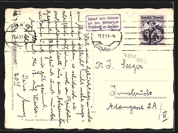 alte Ansichtskarte, gelaufen 1951, Eckknick re. oben, guter Zustand
