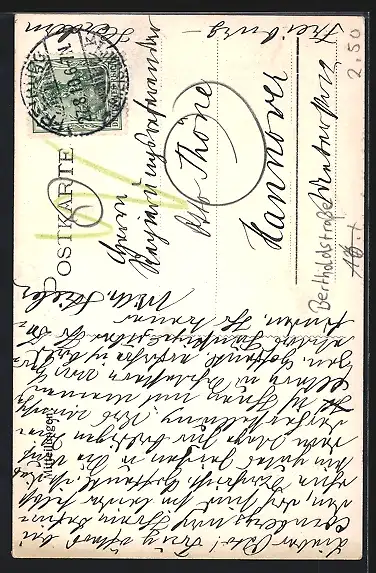 alte Ansichtskarte, gelaufen 1910, Stempelspur, guter Zustand