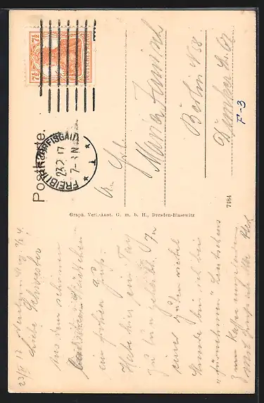 alte Ansichtskarte, gelaufen 1917, Stempelspur, guter Zustand