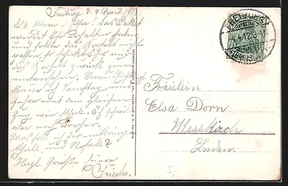 alte Ansichtskarte, gelaufen 1912, Eckknick li. oben, Ecken bestoßen, guter Zustand