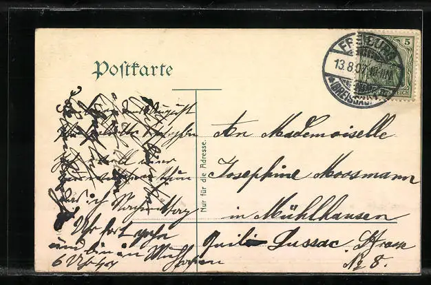 gelaufen 1907, Eckknick oben li., guter Zustand