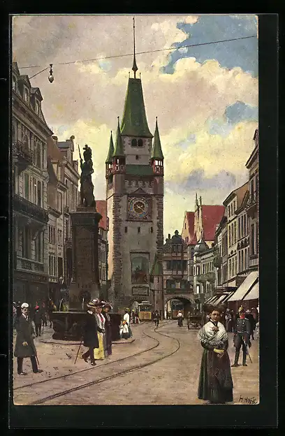 AK Freiburg i. Br., Kaiserstrasse mit Martinstor
