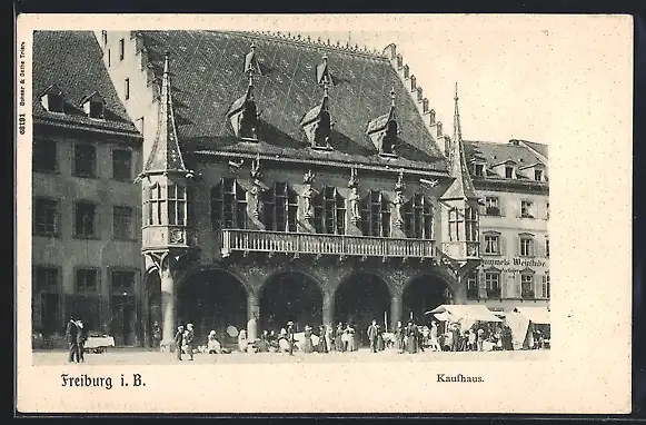 AK Freiburg i. Br., Kaufhaus mit Passanten