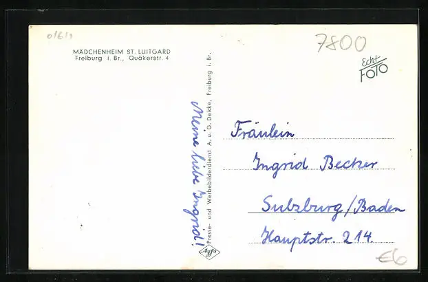 AK Freiburg i. Br., Mädchenheim St. Luitgard, Quäkerstrasse 4