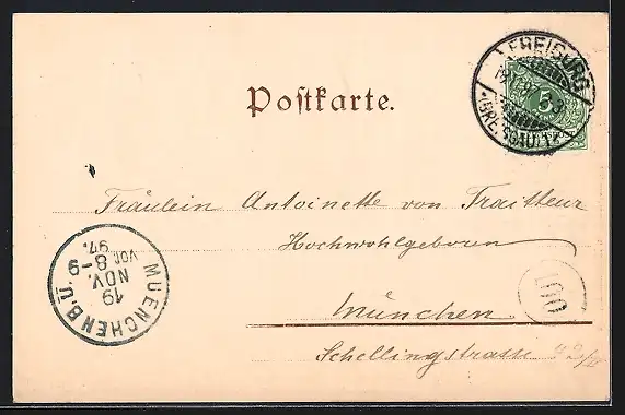 alte Ansichtskarte, gelaufen 1897, Stempelspur, guter Zustand