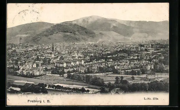 AK Freiburg i. Br., Panoramablick auf die Stadt