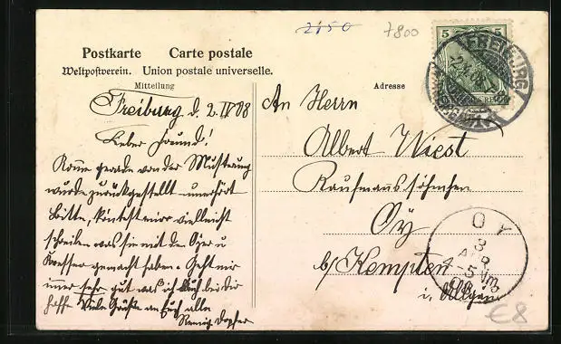 alte Ansichtskarte, gelaufen 1908, Stempelspur, guter Zustand