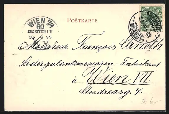alte Ansichtskarte, gelaufen 1899, guter Zustand