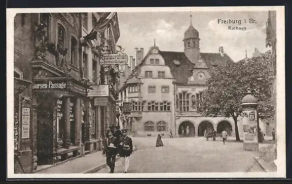 AK Freiburg i. Br., Rathaus, Strassenpartie