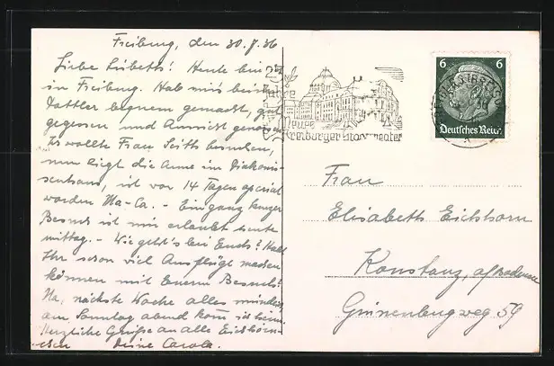 alte Ansichtskarte, gelaufen 1936, guter Zustand