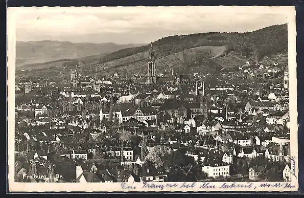 AK Freiburg i. Br., Teilansicht mit Kirche