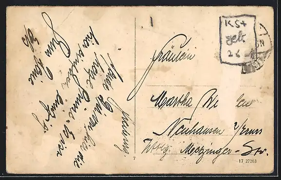 alte Ansichtskarte, gelaufen, Briefmarke entfernt, rückseitig Oberflächenschaden, Bugspur re. oben, guter Zustand