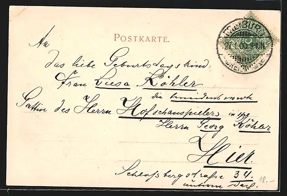 alte Ansichtskarte, gelaufen 1900, Eckknick re. oben, guter Zustand