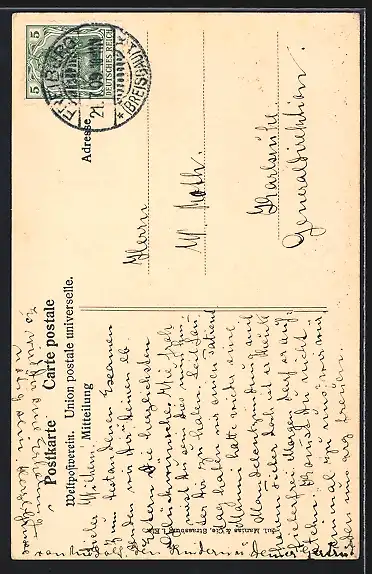 alte Ansichtskarte, gelaufen 1909, guter Zustand