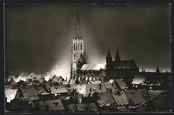 AK Freiburg i. Br., Winterliche Kirche bei Nacht